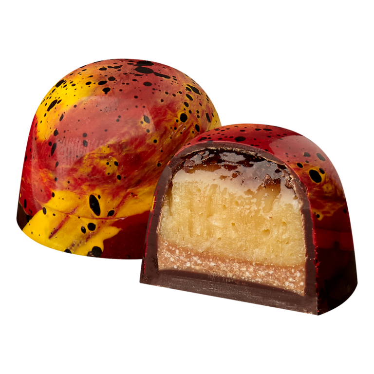 Roasted wattleseed lends a distinctly Australian character — nutty, coffee-like and earthy — to this smooth milk chocolate bonbon. A truly native taste of Australia.